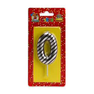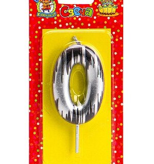 Свеча Цифра (0) Серебро в черную полоску на блистере Дон Карнавал С-2519
