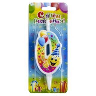 Свеча Цифра (0) С Днем рождения! смайлик с шарами, на блистере 5960