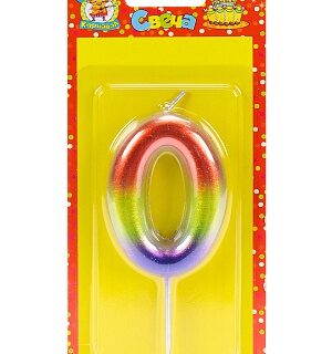 Свеча Цифра (0) Радуга на блистере 3,5*5см 5856