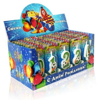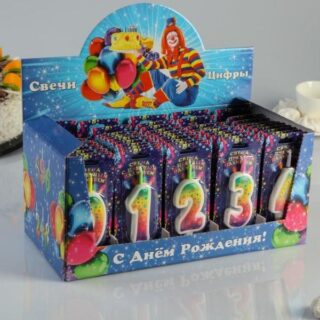 Свеча Цифра (0) Суперблеск цвет ассорти, на блистере 3680