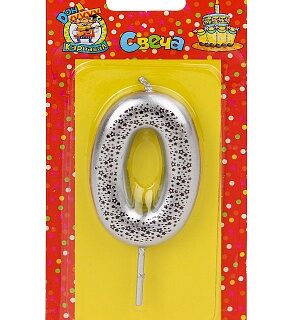 Свеча Цифра (0) Серебро глиттер малая на блистере Дон карнавал С-1828