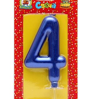 Свеча Цифра (4) Синий металлик большая на блистере Дон карнавал С-1846