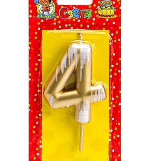 Свеча Цифра (4) Золотой металлик большая на блистере Дон карнавал С-1866