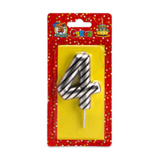 Свеча Цифра (4) Серебро в черную полоску на блистере Дон Карнавал С-2523
