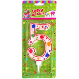 Свеча Цифра (5) Воздушные шарики цветные 11,5см на блистере Микрос Ч16555