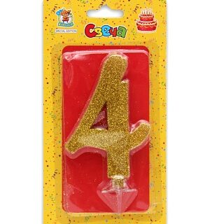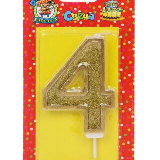 Свеча Цифра (4) Золотой глиттер с окантовкой на блистере Дон карнавал С-5978
