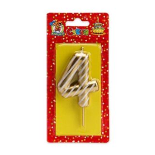 Свеча Цифра (4) Золотая в полоску на блистере Миленд С-2533