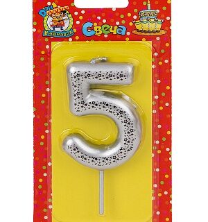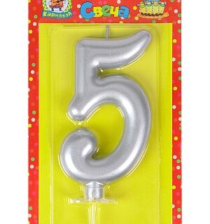 Свеча Цифра (5) Серебро металлик большая на блистере Дон карнавал С-1877