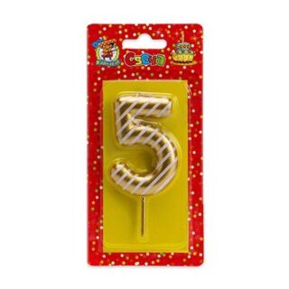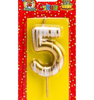 Свеча Цифра (5) Золотая в полоску на блистере Миленд С-2534