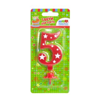 Свеча Цифра (5) Звездочки красная на блистере Ч16095