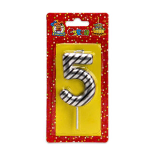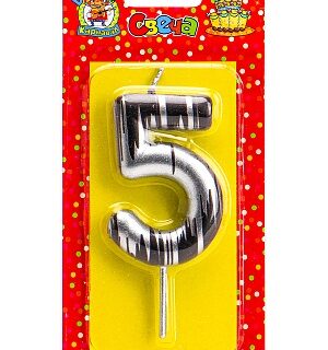 Свеча Цифра (5) Серебро в черную полоску на блистере Дон Карнавал С-2524