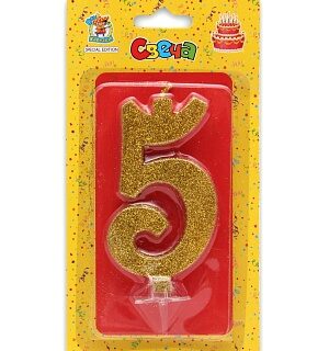 Свеча Цифра (5) Золотой глиттер с окантовкой на блистере Дон карнавал С-5979