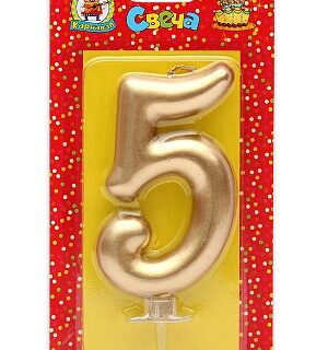 Свеча Цифра (5) Золотой металлик большая на блистере Дон карнавал С-1867