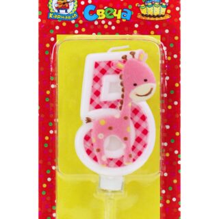 Свеча Цифра (5) Жирафик розовый на блистере Дон Карнавал С-8319