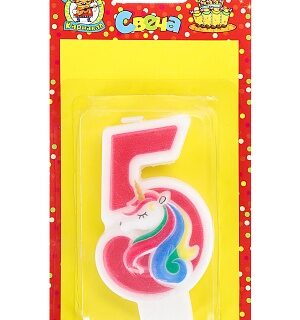 Свеча Цифра (5) Единорожка на блистере Дон Карнавал С-5939