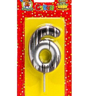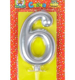 Свеча Цифра (6) Серебро металлик большая на блистере Дон карнавал С-1878