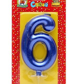 Свеча Цифра (6) Синий металлик большая на блистере Дон карнавал С-1848