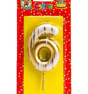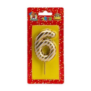 Свеча Цифра (6) Золотая в полоску на блистере Миленд С-2535