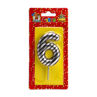 Свеча Цифра (6) Серебро в черную полоску на блистере Дон Карнавал С-2525