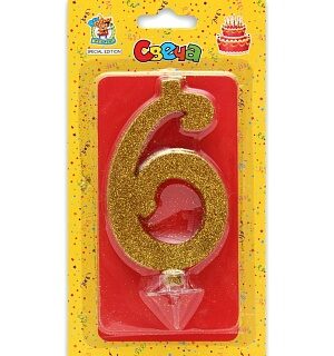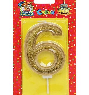 Свеча Цифра (6) Золотой глиттер с окантовкой на блистере Дон карнавал С-5980