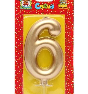 Свеча Цифра (6) Золотой металлик большая на блистере Дон карнавал С-1868
