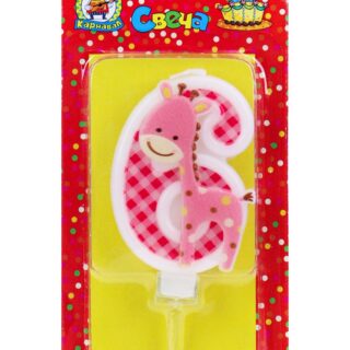 Свеча Цифра (6) Жирафик розовый на блистере Дон Карнавал С-8320