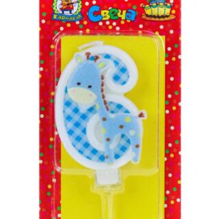 Свеча Цифра (6) Жирафик синий на блистере Дон Карнавал С-8310