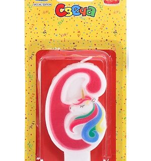 Свеча Цифра (6) Единорожка на блистере Дон Карнавал С-5940
