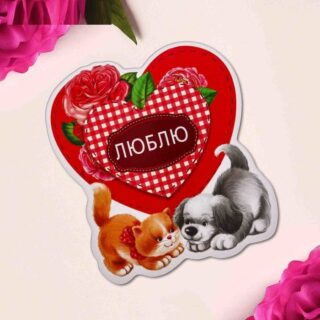 Магнит винил Люблю (сердце, котенок и щенок) 8 см 2628651