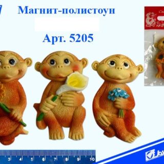 Магнит полистоун Обезьянка с цветком 6,5 см 5205