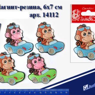 Магнит резина Обезьянка на автомобиле 7 см 14112