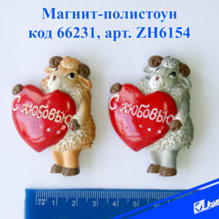 Магнит полистоун БАРАШЕК с СЕРДЕЧКОМ ZH6154 4*6см