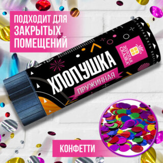 Хлопушка пружинная 11см наполнитель фольга круги Золотая сказка 591468