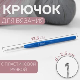 Крючок для вязания с пластик.ручкой 2,5мм 13,5см синий 744673