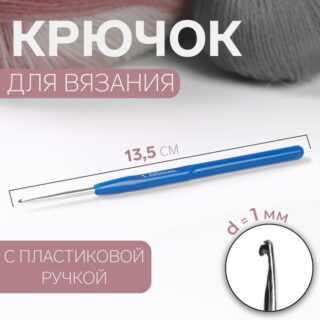 Крючок для вязания с пластик.ручкой 1,0мм 13,5см синий 1161176