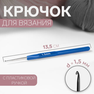 Крючок для вязания с пластик.ручкой 1,5мм 13,5см синий 1161177