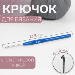 Крючок для вязания с пластик.ручкой 3,0мм 13,5см синий 1161179