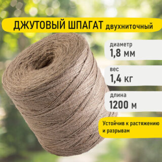Шпагат джутовый 1200м 1200текс d=1,8мм полированный 2-х ниточный 607942