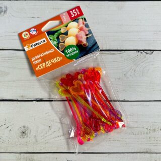 Шпажки-пика пластик 85мм Сердце (набор 35шт) в пакете Paterra 401-764