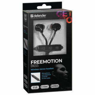 Наушники с микрофоном (гарнитура) Defender FreeMotion B655, Bluetooth, беспроводные, черные, 63655