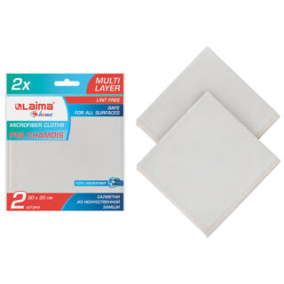 Салфетка из микрофибры 30*30см (набор 2шт) для глад.поверх., полировки стекла, оптики Лайма 607788