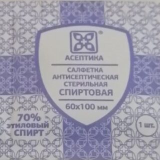 Салфетка влажная в инд.упаковке 60*100мм (спирт 70%) антисептическая стерильная (цена за 1шт)