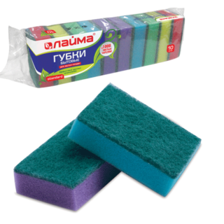 Губка для посуды с чистящим слоем (набор 10шт) Лайма 80*53*26мм 601551