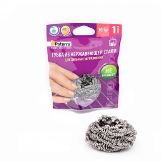 Губка для посуды металлическая 60*60*25 мм Paterra 16гр 402-378