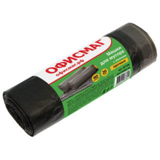 Мешки для мусора 60л (20шт) 15мк ПНД 60*70см прочные, с завязками, черные Офисмаг 601398