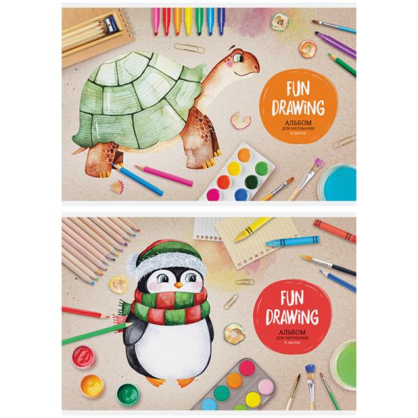 Альбом для рисования А4 08л Арт-спейс Мультяшки. Fun drawing (100гр) скрепка, мелов.картон А08_26182
