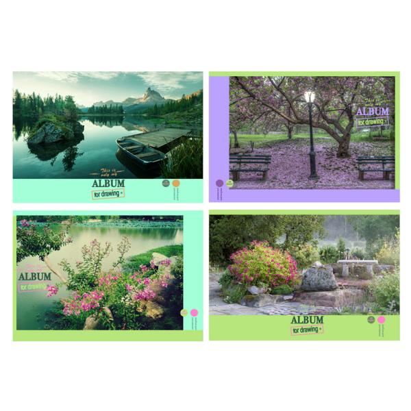 Альбом для рисования А4 20л БиДжи Природа (100гр) скрепка АР4ск20 8746 ассорти 4 вида