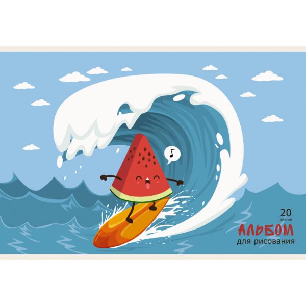 Альбом для рисования А4 20л Эксмо Лови волну! (110гр) скрепка А202306 мел.карт.