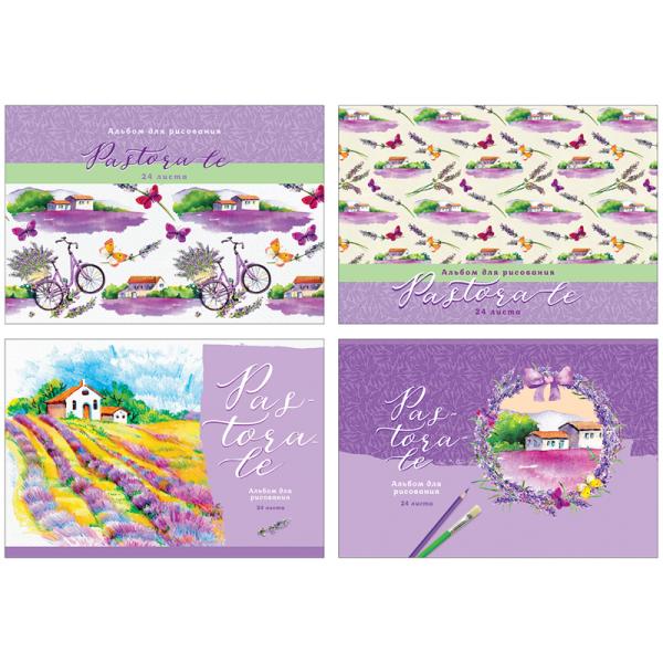 Альбом для рисования А4 24л БиДжи Лавандовый Pastorale (100гр) скрепка АР4ск24 9916 ассорти