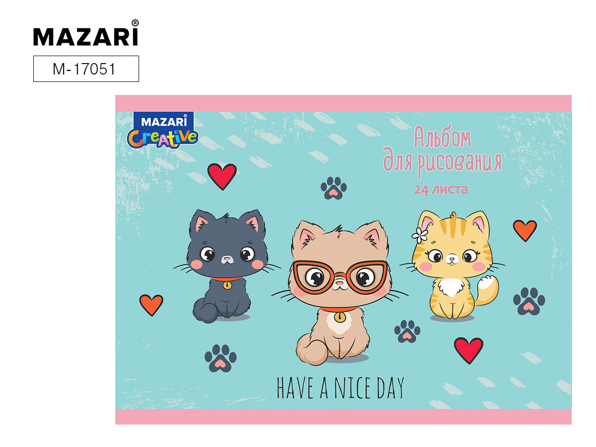 Альбом для рисования А4 24л Mazari Котята (100гр) скрепка M-17051 мел.картон